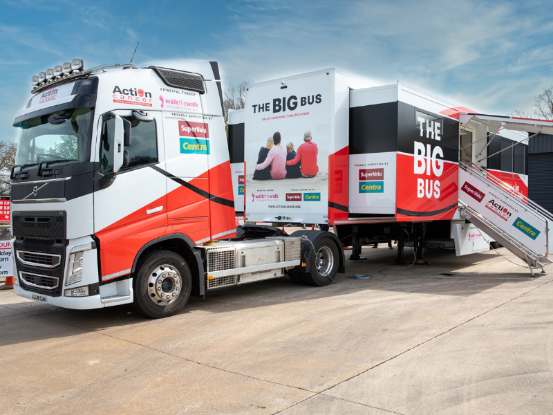The Big Bus is Action Cancer’s bespoke mobile unit which was designed to travel the length and breadth of Northern Ireland with its onboard life-saving services.